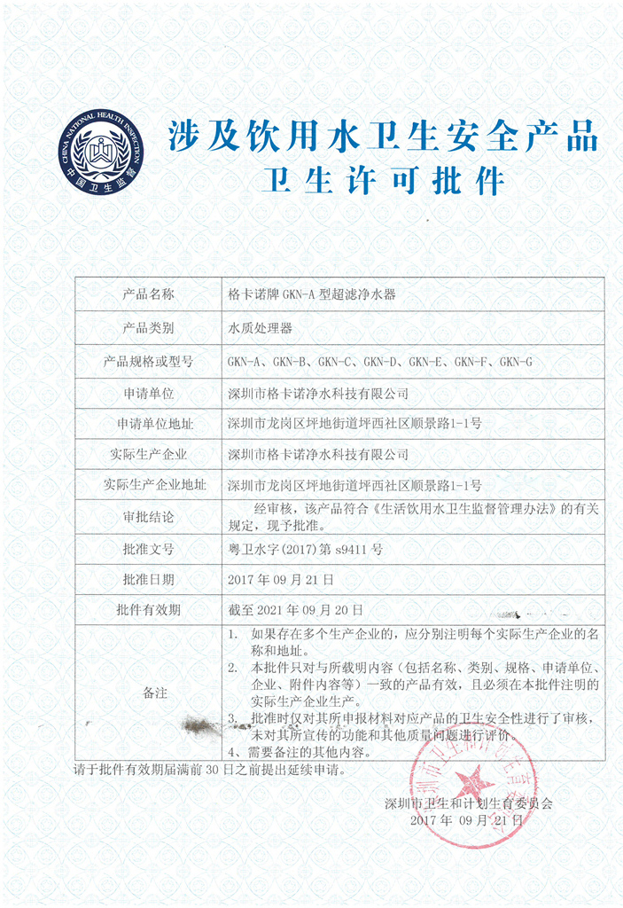 >> 涉及饮用水卫生许可证